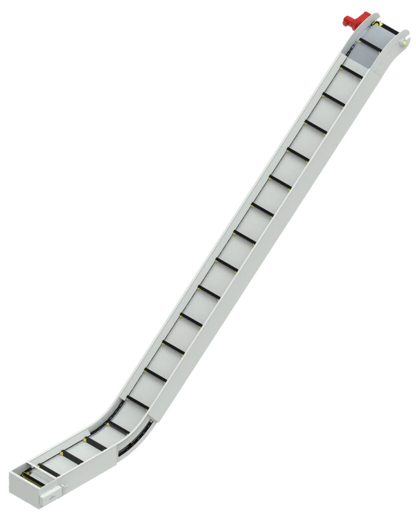 Das Fördergut wird über eine umlaufende Kette mit Mitnehmern bewegt, die das Material sicher mitnehmen und auch bei schweren, feuchten oder ungleichmäßigen Stoffen einen gleichmäßigen Transport gewährleisten. Durch seine geschlossene oder teilgeschlossene Bauweise eignet sich der Mitnehmerkettenförderer besonders für den Einsatz in beengten Einbausituationen und zur sauberen Materialführung.