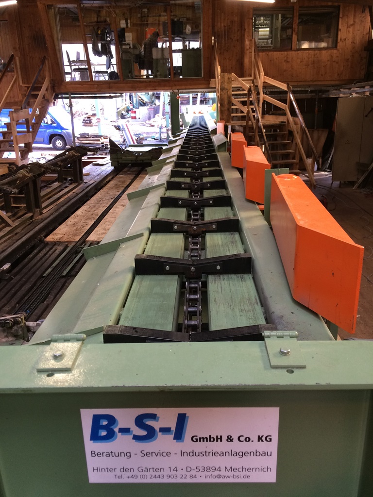 Zur Fa. HIT in Torgau lieferte B-S-I einen Stufenschieber als Erweiterung einer Rundholzaufgabe an einer bestehenden Rundholzsortieranlage.