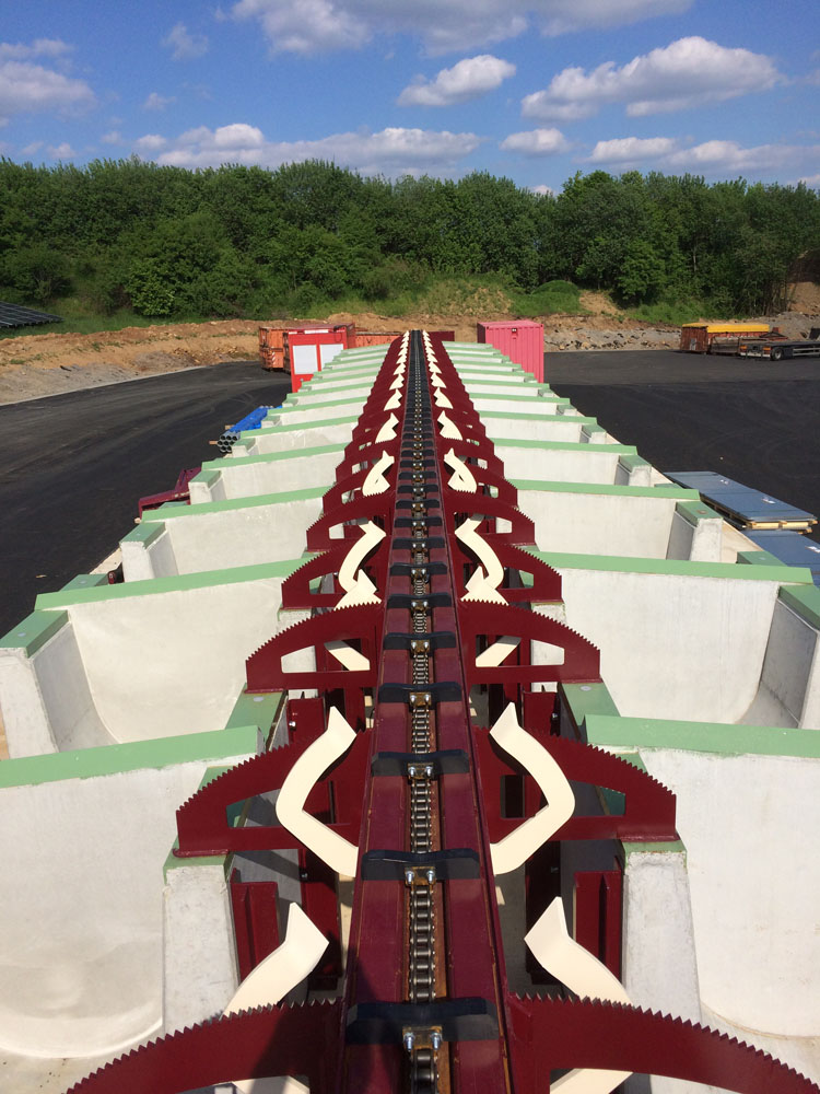 B-S-I lieferte und montierte einen 66 Meter langen Entsorgungskratzer unter einer EWD-Linie. Die alten Entsorgungskratzer wurden demontiert und ein Sieb wurde umgestellt. Zusätzlich wurden bestehende Förderbänder umgebaut, die die Übergrößen in einen bestehenden Hacker fördern.