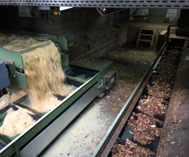 Für die Entsorgung der Rinde wurde ein Balkenkratzer unter der Vereinzelung installiert. Dies ist bereits der 4 Balkenkratzer aus dem Hause B-S-I der in Torgau installiert wurde.